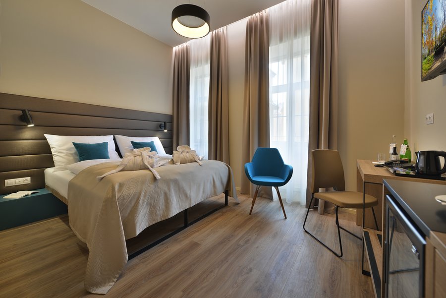 All of the hotel rooms are air-conditioned and offer a peaceful sleep in the city centre thanks to special noise-proof windows. The practical design of the rooms is decorated in natural tones, just like other interior spaces.